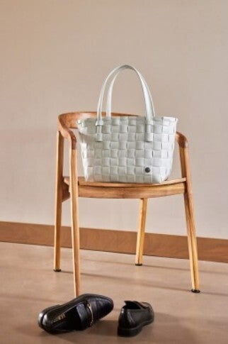 Handige shopper met handvat uit NAMAAKLEER (glad).