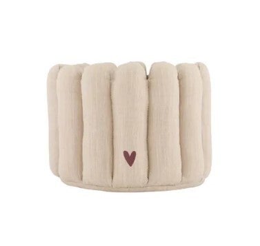 Een opbergmandje komt altijd goed van pas in de babykamer. Deze gewatteerde opbergmandjes van Zusss is gemaakt van katoen en hebben een zand kleur. Op de voorkant van de kleine mand staat een Zusss hartje afgebeeld, op de grote mand staat de tekst "jij maakt mij blij". Deze opbergmandjes zijn ideaal voor op de commode om spulletjes georganiseerd te bewaren zoals verzorgingsproducten of luiers.
