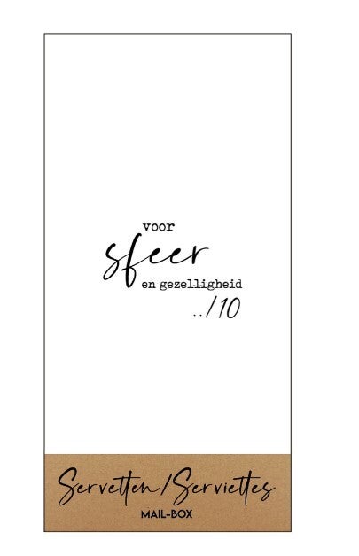 Langwerpige servetten met tekst "VOOR SFEER EN GEZELLIGHEID"