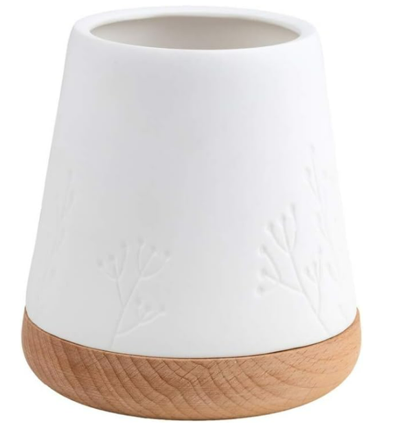 Materiaal: ongeglazuurd porselein met reliëf, houten bamboe voet