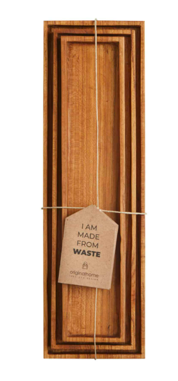 De Rectangle Tray Reclaimed Set van 3 is geschikt voor het serveren van allerlei soorten snacks zoals nootjes, olijven en snoep. Elk teak item heeft zijn eigen natuurlijke en biologische tekening, is voedselveilig en van duurzaam teak wortelhout. De moderne vorm van deze dienbladen past prachtig in elk stijlinterieur en is geweldig voor het opbergen of tentoonstellen van diverse items.