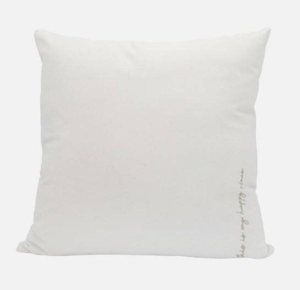 Maak het nog gezelliger in huis met deze prachtige kussens met borduursel. Op het kussen, in zandkleur, staat de tekst "This is my happy place".