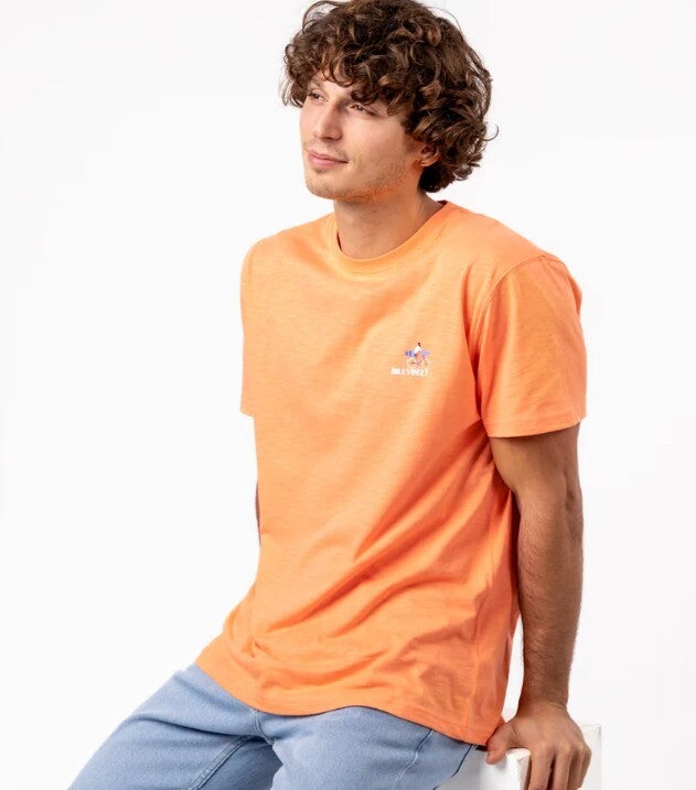 Het Vintage T-shirt van biologisch katoen is versierd met kleuren en prints in surfstijl. Met een dichtheid van 180 gr/m² zorgen het lichte gewicht en de zorgvuldige afwerking voor een vleugje originaliteit deze zomer.